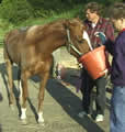 working the Ttouch Therapy of Linda Tellington-Jones and the Neurokinesiological Release techniques of Michel Kaplan on Bunny, as well as administering homeopathics. And also